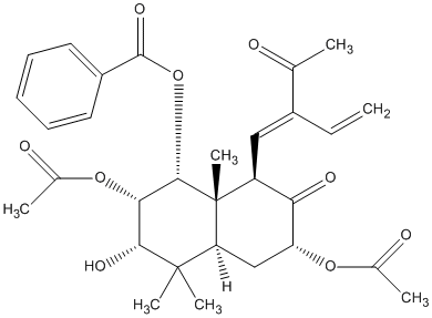 InChI=1S/C30H36O9/c1-8-19(16(2)31)14-21-24(34)22(37-17(3)32)15-23-29(5,6)26(35)25(38-18(4)33)27(30(21,23)7)39-28(36)20-12-10-9-11-13-20/h8-14,21-23,25-27,35H,1,15H2,2-7H3/b19-14+/t21-,22+,23-,25-,26+,27-,30-/m0/s1 |