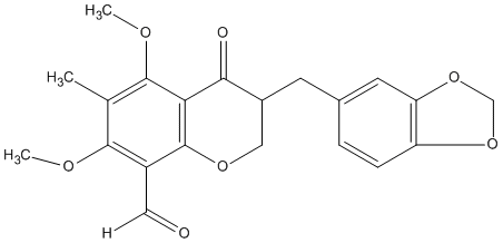 InChI=1S/C21H20O7/c1-11-19(24-2)14(8-22)21-17(20(11)25-3)18(23)13(9-26-21)6-12-4-5-15-16(7-12)28-10-27-15/h4-5,7-8,13H,6,9-10H2,1-3H3/t13-/m1/s1 |