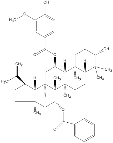C=C(C)[C@@H]1CC[C@]2(C)C[C@@H](OC(=O)c3ccccc3)[C@]3(C)[C@H](C[C@@H](OC(=O)c4ccc(O)c(OC)c4)[C@@H]4[C@@]5(C)CC[C@H](O)C(C)(C)[C@@H]5CC[C@]43C)[C@@H]12 |