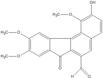 InChI=1S/C21H16O6/c1-25-15-7-12-13(8-16(15)26-2)20(24)17-11(9-22)6-10-4-5-14(23)21(27-3)18(10)19(12)17/h4-9,23H,1-3H3 |