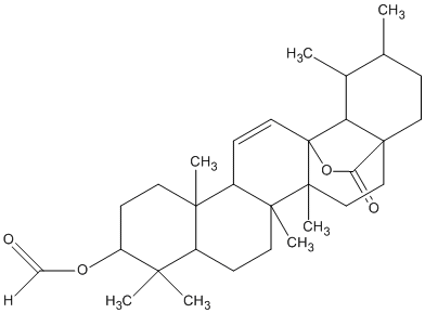 InChI=1S/C31H46O4/c1-19-8-14-30-17-16-29(7)28(6)13-9-21-26(3,4)23(34-18-32)11-12-27(21,5)22(28)10-15-31(29,35-25(30)33)24(30)20(19)2/h10,15,18-24H,8-9,11-14,16-17H2,1-7H3/t19-,20-,21+,22+,23-,24+,27+,28-,29-,30-,31-/m0/s1 |