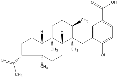 CC(=O)[C@@H]1CC[C@@H]2[C@@]3(C)CC[C@@H](C)[C@@](C)(Cc4cc(C(=O)O)ccc4O)[C@@H]3CC[C@]21C |