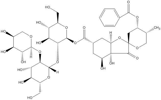 InChI=1S/C38H52O23/c1-14-12-54-37(9-18(14)55-31(49)15-5-3-2-4-6-15)36(51)38(52)21(42)7-16(8-22(38)61-37)32(50)60-35-30(27(47)25(45)20(11-40)57-35)59-34-29(26(46)24(44)19(10-39)56-34)58-33-28(48)23(43)17(41)13-53-33/h2-6,14,16-30,33-35,39-48,52H,7-13H2,1H3/t14-,16+,17+,18+,19-,20-,21+,22-,23+,24-,25-,26+,27+,28-,29-,30-,33+,34+,35+,37+,38-/m1/s1 |