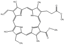 InChI=1S/C34H36N4O4/c1-9-21-17(3)24-13-25-19(5)23(11-12-32(39)41-7)30(37-25)16-31-33(34(40)42-8)20(6)27(38-31)15-29-22(10-2)18(4)26(36-29)14-28(21)35-24/h9,13-16,36-37H,1,10-12H2,2-8H3/b24-13-,25-13-,26-14-,27-15-,28-14-,29-15-,30-16-,31-16- |