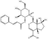 InChI=1S/C25H30O11/c1-25(32)10-9-14-15(22(30)31)12-33-23(18(14)25)36-24-21(20(29)19(28)16(11-26)34-24)35-17(27)8-7-13-5-3-2-4-6-13/h2-8,12,14,16,18-21,23-24,26,28-29,32H,9-11H2,1H3,(H,30,31)/b8-7+/t14-,16-,18-,19-,20+,21-,23+,24+,25-/m1/s1 |