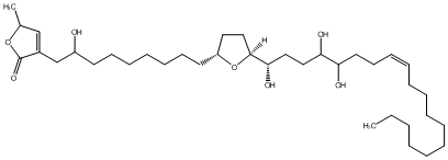 InChI=1S/C37H66O7/c1-3-4-5-6-7-8-9-10-11-12-16-19-22-33(39)34(40)24-25-35(41)36-26-23-32(44-36)21-18-15-13-14-17-20-31(38)28-30-27-29(2)43-37(30)42/h12,16,27,29,31-36,38-41H,3-11,13-15,17-26,28H2,1-2H3/b16-12-/t29-,31-,32-,33+,34-,35+,36+/m1/s1 |
