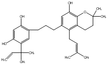 InChI=1S/C30H40O4/c1-8-29(4,5)24-16-21(25(31)18-26(24)32)11-9-10-20-17-27(33)28-23(14-15-30(6,7)34-28)22(20)13-12-19(2)3/h8,12,16-18,31-33H,1,9-11,13-15H2,2-7H3 |