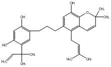 InChI=1S/C30H38O4/c1-8-29(4,5)24-16-21(25(31)18-26(24)32)11-9-10-20-17-27(33)28-23(14-15-30(6,7)34-28)22(20)13-12-19(2)3/h8,12,14-18,31-33H,1,9-11,13H2,2-7H3 |