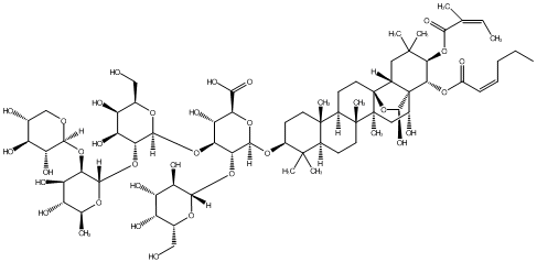 C/C=C(/C)C(=O)O[C@H]1[C@H](OC(=O)/C=CCCC)[C@]23[C@H](O)C[C@]4(C)[C@@](CC[C@@H]5[C@@]6(C)CC[C@H](O[C@@H]7O[C@H](C(=O)O)[C@@H](O)[C@H](O[C@@H]8O[C@H](CO)[C@H](O)[C@H](O)[C@H]8O[C@@H]8O[C@@H](C)[C@H](O)[C@@H](O)[C@H]8O[C@@H]8OC[C@@H](O)[C@H](O)[C@H]8O)[C@H]7O[C@@H]7O[C@H](CO)[C@H](O)[C@H](O)[C@H]7O)C(C)(C)[C@@H]6CC[C@]54C)(O[C@@H]2O)[C@@H]3CC1(C)C |