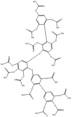 CC(=O)Oc1cc(OC(C)=O)c(-c2c(OC(C)=O)cc(OC(C)=O)c(Oc3cc(OC(C)=O)c(OC(C)=O)c(OC(C)=O)c3Oc3cc(OC(C)=O)c(Oc4cc(OC(C)=O)c(OC(C)=O)c(OC(C)=O)c4)c(OC(C)=O)c3)c2OC(C)=O)c(OC(C)=O)c1 |