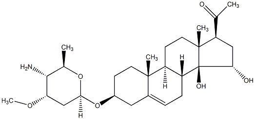 InChI=1S/C28H45NO6/c1-15(30)21-13-23(31)28(32)20-7-6-17-12-18(35-24-14-22(33-5)25(29)16(2)34-24)8-10-26(17,3)19(20)9-11-27(21,28)4/h6,16,18-25,31-32H,7-14,29H2,1-5H3/t16-,18+,19+,20-,21-,22+,23+,24+,25-,26+,27-,28-/m1/s1 |