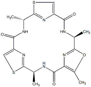 Cc1oc2nc1C(=O)N[C@@H](C)c1nc(cs1)C(=O)N[C@H](C)c1nc(cs1)C(=O)N[C@H]2C |