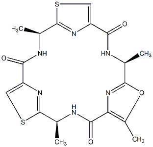 InChI=1S/C19H20N6O4S2/c1-7-17-25-13(10(4)29-17)16(28)22-9(3)19-24-12(6-31-19)15(27)21-8(2)18-23-11(5-30-18)14(26)20-7/h5-9H,1-4H3,(H,20,26)(H,21,27)(H,22,28)/t7-,8-,9-/m0/s1 |