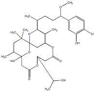 COC(CCC(C)C1OC23CC(OC(=O)CC(C(C)O)OC(=O)CC(O)(O2)C(C)CC3(C)C)C1C)c1ccc(Cl)c(O)c1 |