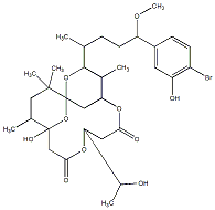 COC(CCC(C)C1OC23CC(OC(=O)CC(C(C)O)OC(=O)CC(O)(O2)C(C)CC3(C)C)C1C)c1ccc(Br)c(O)c1 |