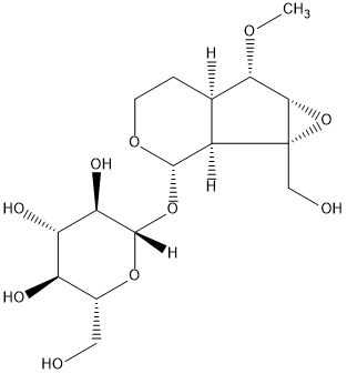 InChI=1S/C16H26O10/c1-22-12-6-2-3-23-14(8(6)16(5-18)13(12)26-16)25-15-11(21)10(20)9(19)7(4-17)24-15/h6-15,17-21H,2-5H2,1H3/t6-,7-,8-,9-,10+,11-,12+,13+,14+,15+,16-/m1/s1 |