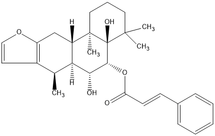 C[C@H]1c2ccoc2C[C@H]2[C@H]1[C@@H](O)[C@@H](OC(=O)/C=C/c1ccccc1)[C@@]1(O)C(C)(C)CCC[C@]21C |