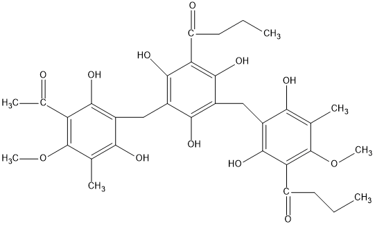 CCCC(=O)c1c(O)c(Cc2c(O)c(C)c(OC)c(C(C)=O)c2O)c(O)c(Cc2c(O)c(C)c(OC)c(C(=O)CCC)c2O)c1O |