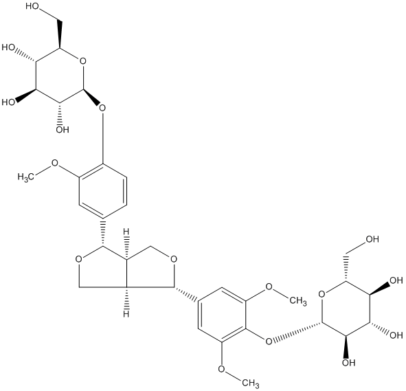 InChI=1S/C33H44O17/c1-42-18-6-13(4-5-17(18)47-32-27(40)25(38)23(36)21(9-34)48-32)29-15-11-46-30(16(15)12-45-29)14-7-19(43-2)31(20(8-14)44-3)50-33-28(41)26(39)24(37)22(10-35)49-33/h4-8,15-16,21-30,32-41H,9-12H2,1-3H3/t15-,16-,21+,22+,23+,24+,25-,26-,27+,28+,29+,30+,32+,33-/m0/s1 |