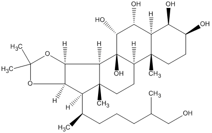 InChI=1S/C30H52O8/c1-15(14-31)8-7-9-16(2)19-23-24(38-27(3,4)37-23)25-29(19,6)13-11-18-28(5)12-10-17(32)21(33)20(28)22(34)26(35)30(18,25)36/h15-26,31-36H,7-14H2,1-6H3/t15?,16-,17+,18-,19+,20-,21+,22-,23-,24-,25-,26-,28-,29-,30+/m1/s1 |