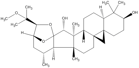 InChI=1S/C31H50O5/c1-17-15-18-23(26(4,5)34-8)36-31(35-18)22(17)27(6)13-14-30-16-29(30)12-11-21(32)25(2,3)19(29)9-10-20(30)28(27,7)24(31)33/h17-24,32-33H,9-16H2,1-8H3/t17-,18-,19+,20+,21+,22-,23+,24-,27-,28-,29-,30+,31+/m1/s1 |