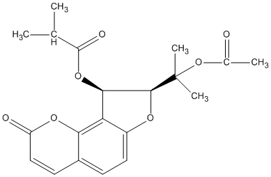 InChI=1S/C20H22O7/c1-10(2)19(23)26-17-15-13(24-18(17)20(4,5)27-11(3)21)8-6-12-7-9-14(22)25-16(12)15/h6-10,17-18H,1-5H3/t17-,18+/m1/s1 |