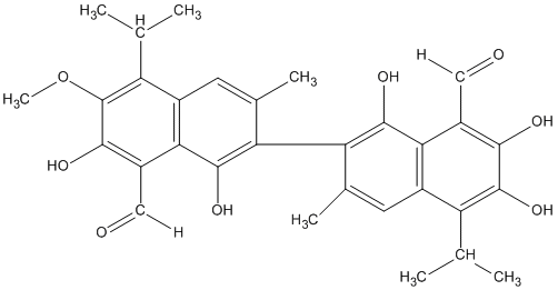 COc1c(O)c(C=O)c2c(O)c(-c3c(C)cc4c(C(C)C)c(O)c(O)c(C=O)c4c3O)c(C)cc2c1C(C)C |