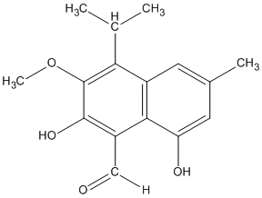 COc1c(O)c(C=O)c2c(O)cc(C)cc2c1C(C)C |