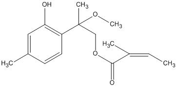 InChI=1/C16H22O4/c1-6-12(3)15(18)20-10-16(4,19-5)13-8-7-11(2)9-14(13)17/h6-9,17H,10H2,1-5H3/b12-6- |