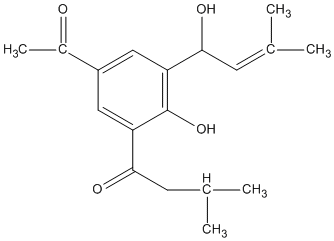 CC(=O)c1cc(C(=O)CC(C)C)c(O)c(C(O)C=C(C)C)c1 |