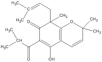 CC(C)=CCC1(C)C(=O)C(C(=O)C(C)C)=C(O)C2=C1OC(C)(C)C=C2 |