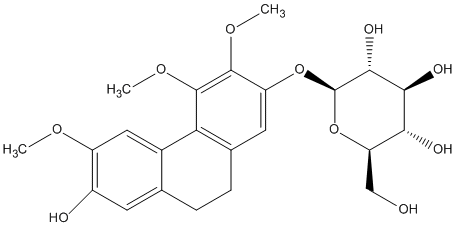 COc1cc2c(cc1O)CCc1cc(O[C@@H]3O[C@H](CO)[C@@H](O)[C@H](O)[C@H]3O)c(OC)c(OC)c1-2 |