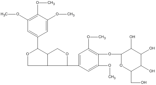 InChI=1S/C29H38O13/c1-34-17-6-13(7-18(35-2)27(17)38-5)25-15-11-40-26(16(15)12-39-25)14-8-19(36-3)28(20(9-14)37-4)42-29-24(33)23(32)22(31)21(10-30)41-29/h6-9,15-16,21-26,29-33H,10-12H2,1-5H3 |