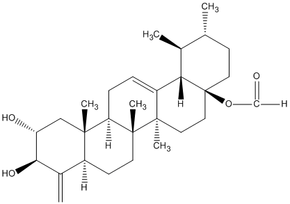 InChI=1S/C29H44O4/c1-16-9-12-29(25(32)33)14-13-27(5)20(23(29)17(16)2)7-8-22-26(4)15-21(30)24(31)18(3)19(26)10-11-28(22,27)6/h7,16-17,19,21-24,30-31H,3,8-15H2,1-2,4-6H3,(H,32,33)/t16-,17+,19+,21-,22-,23+,24-,26+,27-,28-,29+/m1/s1 |