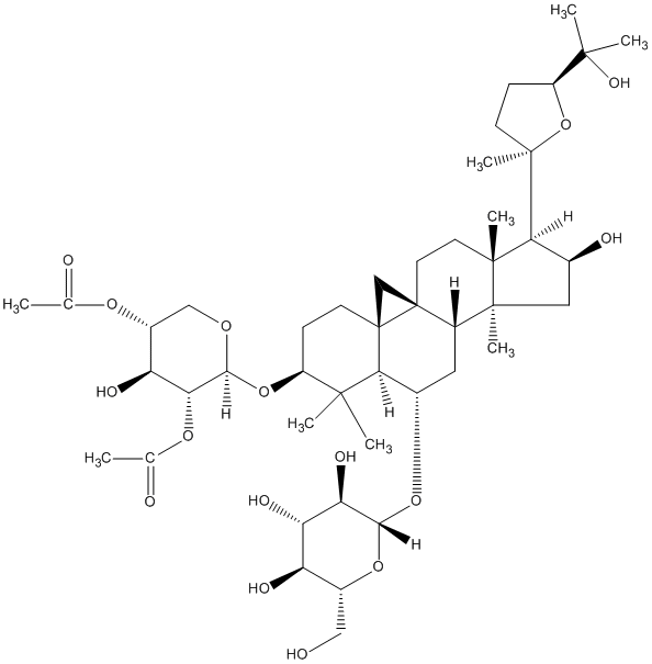 InChI=1S/C45H72O16/c1-21(47)56-26-19-55-38(34(31(26)51)57-22(2)48)60-28-11-13-45-20-44(45)15-14-41(7)35(43(9)12-10-29(61-43)40(5,6)54)23(49)17-42(41,8)27(44)16-24(36(45)39(28,3)4)58-37-33(53)32(52)30(50)25(18-46)59-37/h23-38,46,49-54H,10-20H2,1-9H3/t23-,24-,25+,26+,27-,28-,29-,30+,31-,32-,33+,34+,35-,36-,37+,38-,41+,42-,43+,44-,45+/m0/s1 |