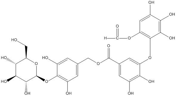 O=COc1cc(O)c(O)c(O)c1Oc1cc(C(=O)OCc2cc(O)c(O[C@@H]3O[C@H](CO)[C@@H](O)[C@H](O)[C@H]3O)c(O)c2)cc(O)c1O |