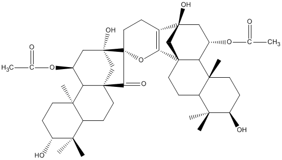 CC(=O)O[C@H]1C[C@]2(O)C[C@@]3(CCC4C(C)(C)[C@H](O)CC[C@@]4(C)C13)C(=O)[C@]21CCC2=C(O1)[C@@]13CCC4C(C)(C)[C@H](O)CC[C@@]4(C)C1[C@@H](OC(C)=O)C[C@]2(O)C3 |