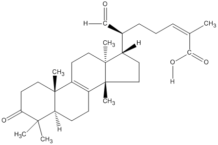 InChI=1S/C30H44O4/c1-19(26(33)34)8-7-9-20(18-31)21-12-16-30(6)23-10-11-24-27(2,3)25(32)14-15-28(24,4)22(23)13-17-29(21,30)5/h8,18,20-21,24H,7,9-17H2,1-6H3,(H,33,34)/b19-8-/t20-,21+,24+,28-,29+,30-/m1/s1 |