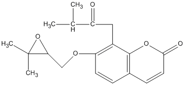 CC(C)C(=O)Cc1c(OCC2OC2(C)C)ccc2ccc(=O)oc12 |