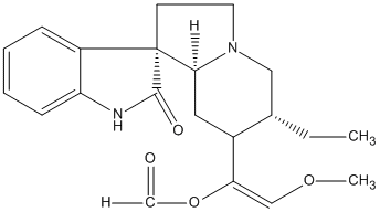 InChI=1S/C21H26N2O4/c1-3-13-11-23-9-8-21(16-6-4-5-7-17(16)22-20(21)26)18(23)10-14(13)15(12-27-2)19(24)25/h4-7,12-14,18H,3,8-11H2,1-2H3,(H,22,26)(H,24,25)/b15-12+/t13-,14-,18-,21-/m0/s1 |