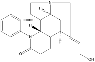 InChI=1S/C21H22N2O2/c24-10-7-13-12-22-9-8-21-16-3-1-2-4-17(16)23-19(25)6-5-14(20(21)23)15(13)11-18(21)22/h1-5,7,15,18,20,24H,6,8-12H2/b13-7-/t15-,18-,20-,21+/m0/s1 |