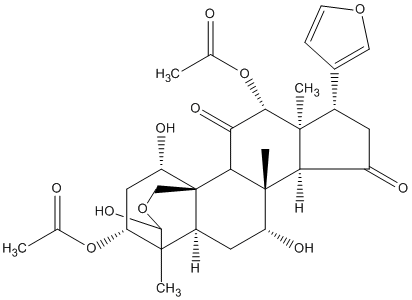 InChI=1S/C30H38O11/c1-13(31)40-21-10-20(35)30-12-39-26(37)28(21,4)18(30)9-19(34)29(5)23-17(33)8-16(15-6-7-38-11-15)27(23,3)25(41-14(2)32)22(36)24(29)30/h6-7,11,16,18-21,23-26,34-35,37H,8-10,12H2,1-5H3/t16-,18-,19+,20-,21+,23+,24-,25-,26?,27-,28+,29-,30+/m0/s1 |
