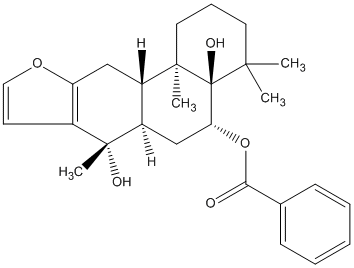 InChI=1S/C27H34O5/c1-24(2)12-8-13-25(3)19-15-21-18(11-14-31-21)26(4,29)20(19)16-22(27(24,25)30)32-23(28)17-9-6-5-7-10-17/h5-7,9-11,14,19-20,22,29-30H,8,12-13,15-16H2,1-4H3/t19-,20+,22+,25+,26+,27+/m0/s1 |