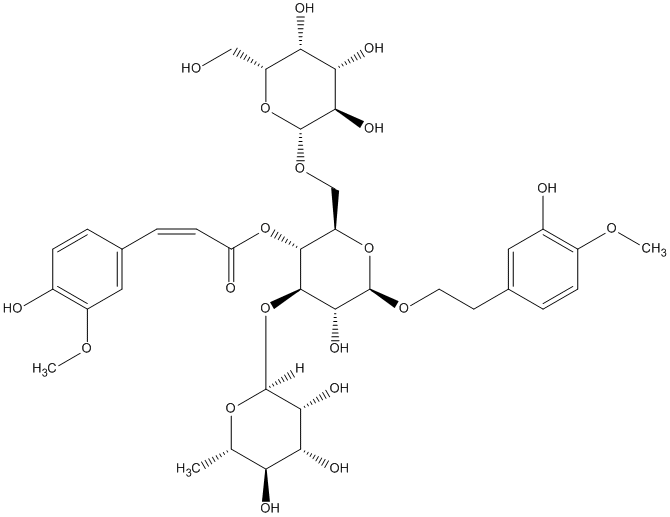 InChI=1S/C37H50O20/c1-16-26(42)28(44)31(47)37(53-16)57-34-32(48)36(51-11-10-18-5-8-21(49-2)20(40)12-18)55-24(15-52-35-30(46)29(45)27(43)23(14-38)54-35)33(34)56-25(41)9-6-17-4-7-19(39)22(13-17)50-3/h4-9,12-13,16,23-24,26-40,42-48H,10-11,14-15H2,1-3H3/b9-6-/t16-,23+,24+,26-,27-,28+,29-,30+,31+,32+,33+,34+,35+,36+,37-/m0/s1 |