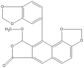 InChI=1S/C21H14O7/c1-23-21-18-12(20(22)28-21)6-10-3-5-14-19(27-9-25-14)17(10)16(18)11-2-4-13-15(7-11)26-8-24-13/h2-7,21H,8-9H2,1H3 |