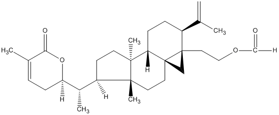 InChI=1S/C30H44O4/c1-18(2)21-8-10-24-28(6)13-11-22(20(4)23-9-7-19(3)26(33)34-23)27(28,5)15-16-30(24)17-29(21,30)14-12-25(31)32/h7,20-24H,1,8-17H2,2-6H3,(H,31,32)/t20-,21-,22+,23+,24-,27+,28-,29+,30-/m0/s1 |