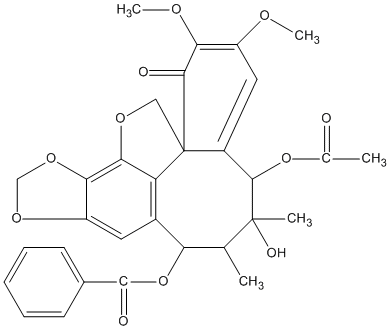 InChI=1S/C31H30O11/c1-15-23(42-29(34)17-9-7-6-8-10-17)18-11-21-24(40-14-39-21)26-22(18)31(13-38-26)19(28(30(15,3)35)41-16(2)32)12-20(36-4)25(37-5)27(31)33/h6-12,15,23,28,35H,13-14H2,1-5H3 |