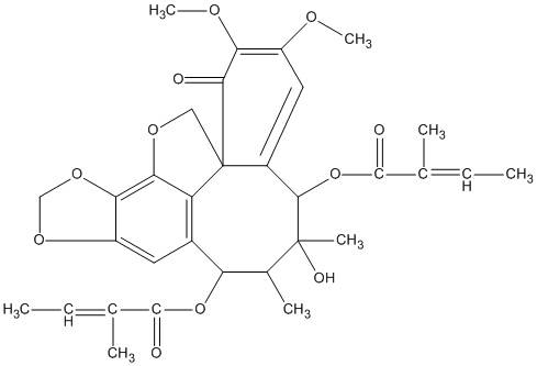 CC=C(C)C(=O)OC1c2cc3c(c4c2C2(CO4)C(=O)C(OC)=C(OC)C=C2C(OC(=O)C(C)=CC)C(C)(O)C1C)OCO3 |