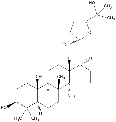 CC(C)(O)C1CC[C@](C)([C@H]2CC[C@]3(C)[C@@H]2CC[C@@H]2[C@@]4(C)CC[C@H](O)C(C)(C)[C@@H]4CC[C@]23C)O1 |