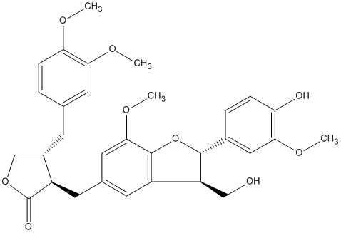 COc1cc([C@H]2Oc3c(OC)cc(C[C@H]4C(=O)OC[C@@H]4Cc4ccc(OC)c(OC)c4)cc3[C@@H]2CO)ccc1O |